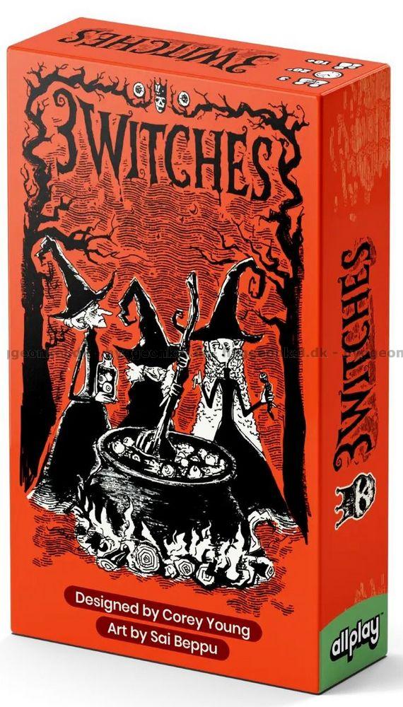 3 Witches er et taktisk kortspil for tre spillere, hvor I brygger kraftfulde miksturer og kæmper om at kontrollere skæbnen. Hver runde byder spillerne på, hvor mange stik de tror, de kan vinde ud af fem mulige. Spilleren med det højeste bud bliver overheks, mens de to øvrige danner hold som medbrygger. Hvis overheksen vinder præcis det antal stik, hun har budt, modtager hun to skæbnebrikker, men lykkes det ikke, får hver af de to medbryggere én brik i stedet. Den første spiller, der opnår fem skæbnebrikker, vinder spillet.