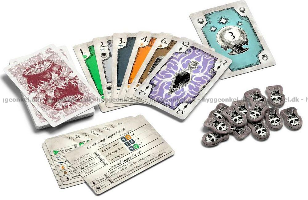 Runden begynder med, at ingredienskort deles ud, hvorefter budfasen afgør rollerne. I selve bryggefase spiller overheksen to kort i hvert stik, ét åbent og ét skjult, og de to medbryggere skal samarbejde om at slå den samlede værdi. Kortenes styrke afgøres af, hvordan ingredienserne kombineres, hvor ens rang eller kulør lægges sammen, mens andre kombinationer afgøres af det højeste kort. Spillet rummer også særlige ingredienser som Elixir samt kort med specielle effekter, der kan vende op og ned på et stik.