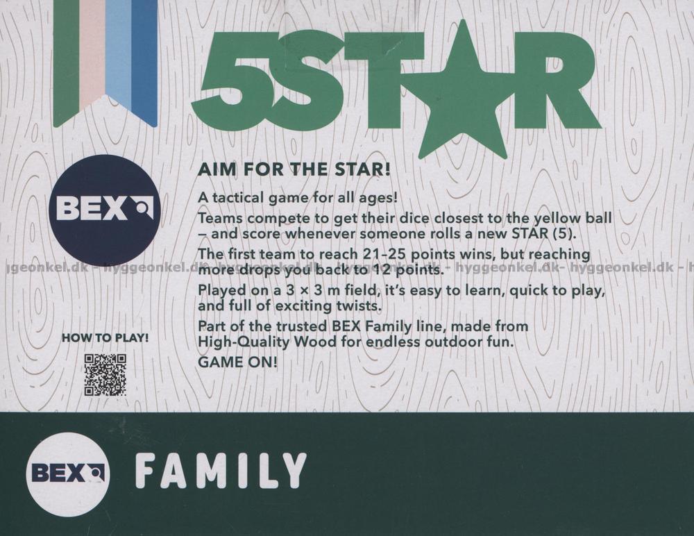 I 5Star handler det om at kombinere præcision med taktiske beslutninger, mens spillet hele tiden udvikler sig. Spillet starter med, at banen opstilles som en firkant, og den gule kugle placeres i midten. Spillerne deles op i to hold, vælger hver sin farve og stiller sig uden for banen bag deres respektive side. Herefter kaster spillerne deres tre terninger ind på banen med det mål at komme så tæt på den gule kugle som muligt.