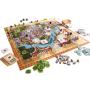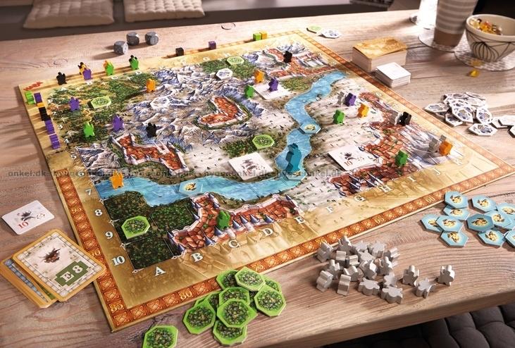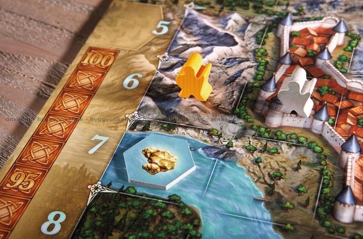 1 spilleplade, kort, markører, terninger og træbrikker.