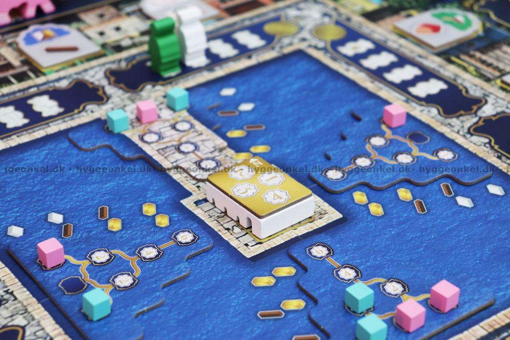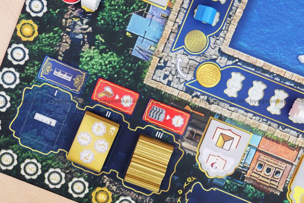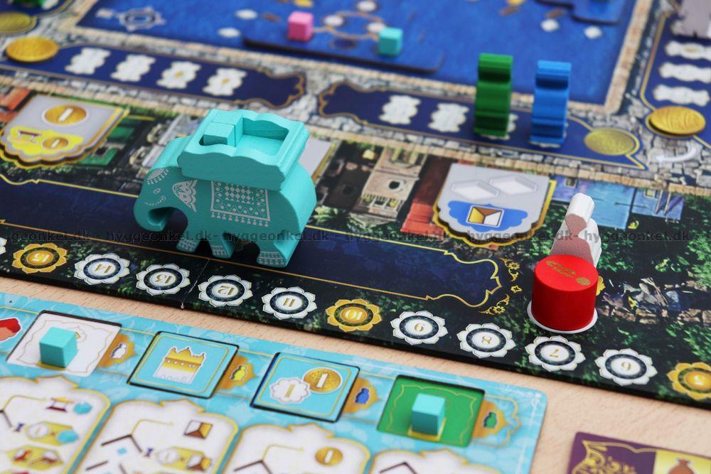 På din tur gælder det om at planlægge dine bevægelser og handlinger klogt. Her flytter du arbejdere rundt og forsøger at lande de rigtige steder, så du kan udføre flere handlinger: hente ressourcer, handle på markedet, udvikle viden og forbedre din egen spilleplade. Din elefant spiller en central rolle, fordi den både bestemmer hvor du kan handle, og fordi den bærer dine donationer til templet.