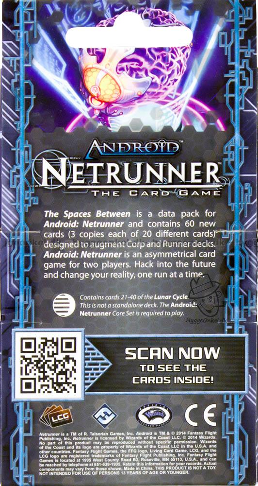The Spaces Between er en udvidelse til det populære Android Netrunner-spil. Her får du 60 nye kort at spille med (3 eksemplarer af 20 forskellige)