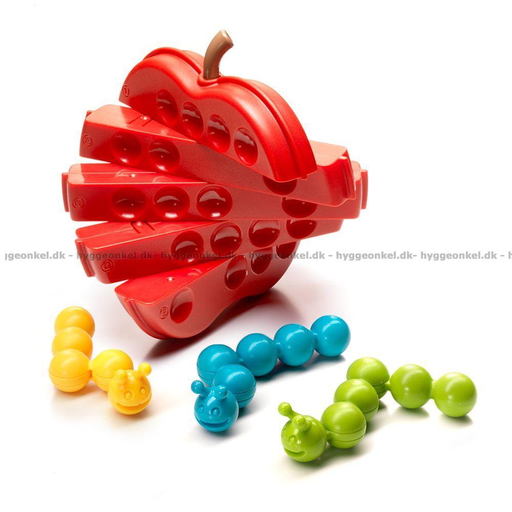 Kan du hjælpene ormene, så der er plads til dem alle i det lækre, røde æble?