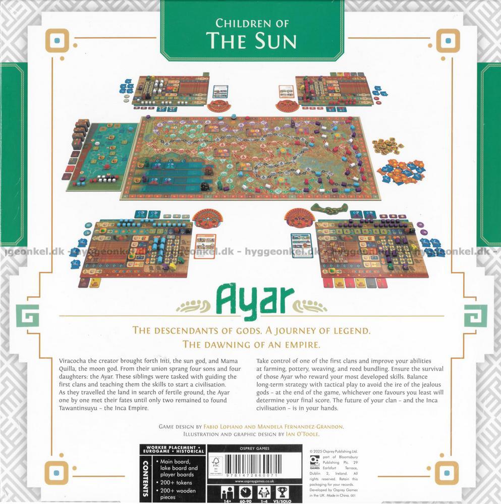 Kun ved at balancere dine resultater mellem solen og månen kan du sikre dig sejren, da din endelige score bestemmes af den laveste af de to. Ayar kombinerer strategi, timing og historisk stemning til en episk rejse gennem Andesbjergenes myter og Inkaernes kultur.
