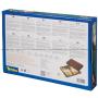 Udover spillepladen får du de obligatoriske 4 terninger, brikker og selvfølgelig dobbelt-terningen.