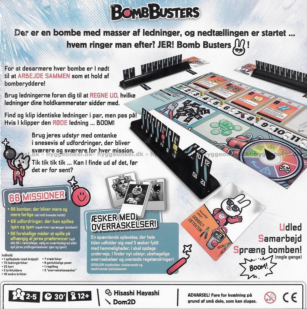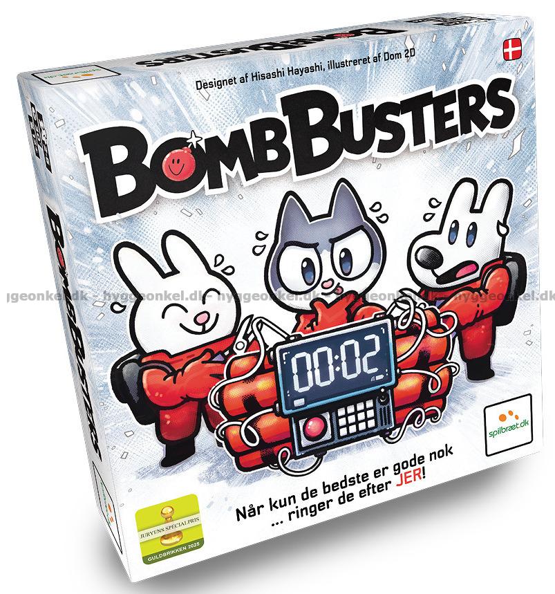 Bomb Busters er et spændingsfyldt samarbejdsspil, hvor I som et hold af bombeeksperter skal arbejde tæt sammen for at afmontere bomben, før det er for sent. Hver spiller har skjulte ledninger foran sig, og gennem logisk tænkning, hukommelse og meget begrænset kommunikation skal I finde frem til, hvilke ledninger der sikkert kan klippes.