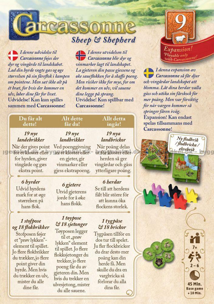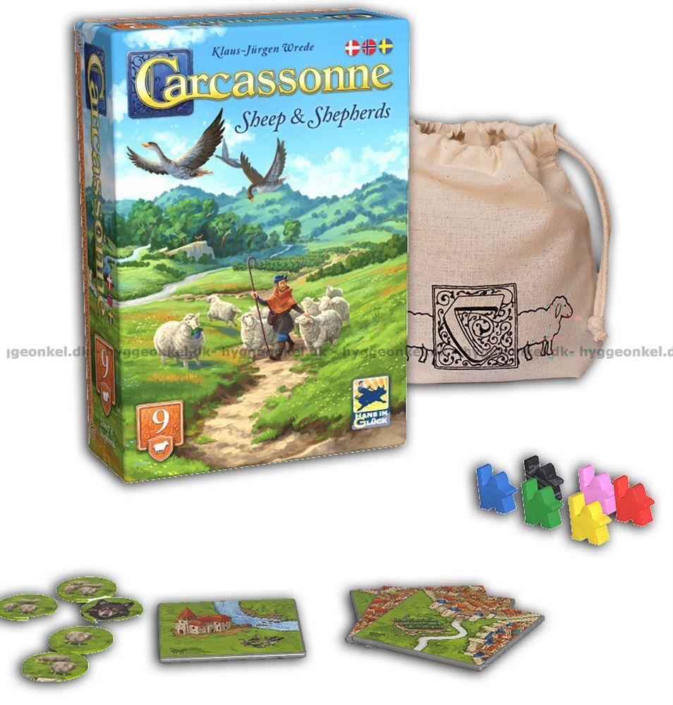 I Sheep & Shepherds får Carcassonne et strejf af landlig idyl og den tilhørende trussel fra ulven. Spillerne kan nu sende hyrder ud på markerne for at samle deres egne fåreflokke. Hver gang flokken vokser, øges også spændingen: bliver du ved med at udvide, eller vælger du at samle flokken, før ulven dukker op og ødelægger alt?