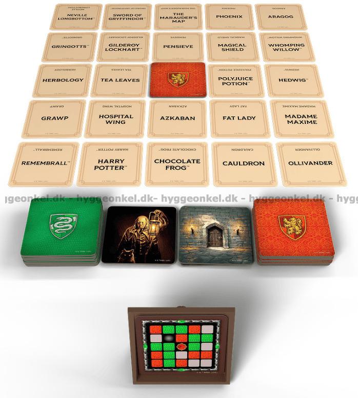 I Codenames: Harry Potter – Back to Hogwarts vender du tilbage til troldmandsverdenen, hvor Hogwarts danner rammen for en leg fyldt med samarbejde, snilde og sjove associationer. Spillet bygger på Codenames, men her er det forvandlet til en magisk oplevelse med velkendte figurer, steder og genstande fra Harry Potter-universet. Spillerne deles op i kollegier og vælger hver en præfekt, som får adgang til et hemmeligt kort over brikkerne på bordet. Med en ledetråd bestående af ét ord og et tal skal præfekten guide sine holdkammerater til at vælge de rigtige kort, uden at de falder i fælderne. For låste døre kan sætte en stopper for fremskridtet, og møder man Argus Filch, er spillet tabt på stedet.