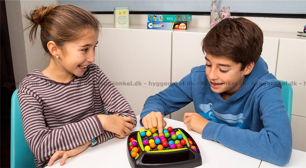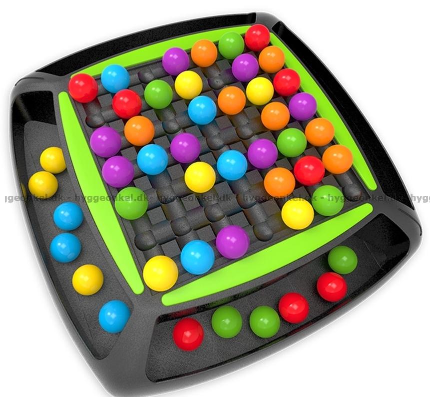 I Collecto gælder det om at tænke strategisk og få flyttet kuglerne rundt på brættet, så kugler med samme farve ligger op ad hinanden. Når man får 3 ens kugler på række, giver det point.
