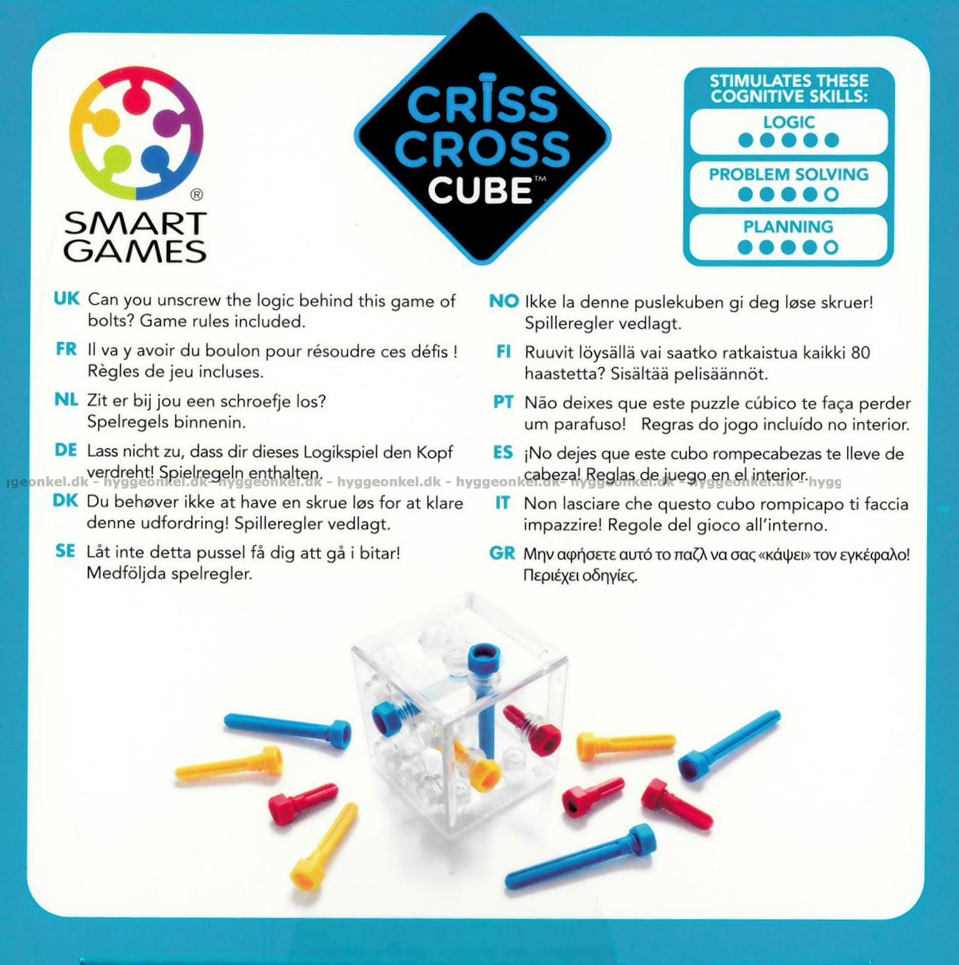 Criss Cross Cube er en skarp og sjov hjerneudfordring, hvor logik og fingerfærdighed går hånd i hånd. Kan du skrue hovedet rigtigt på og løse udfordringerne?