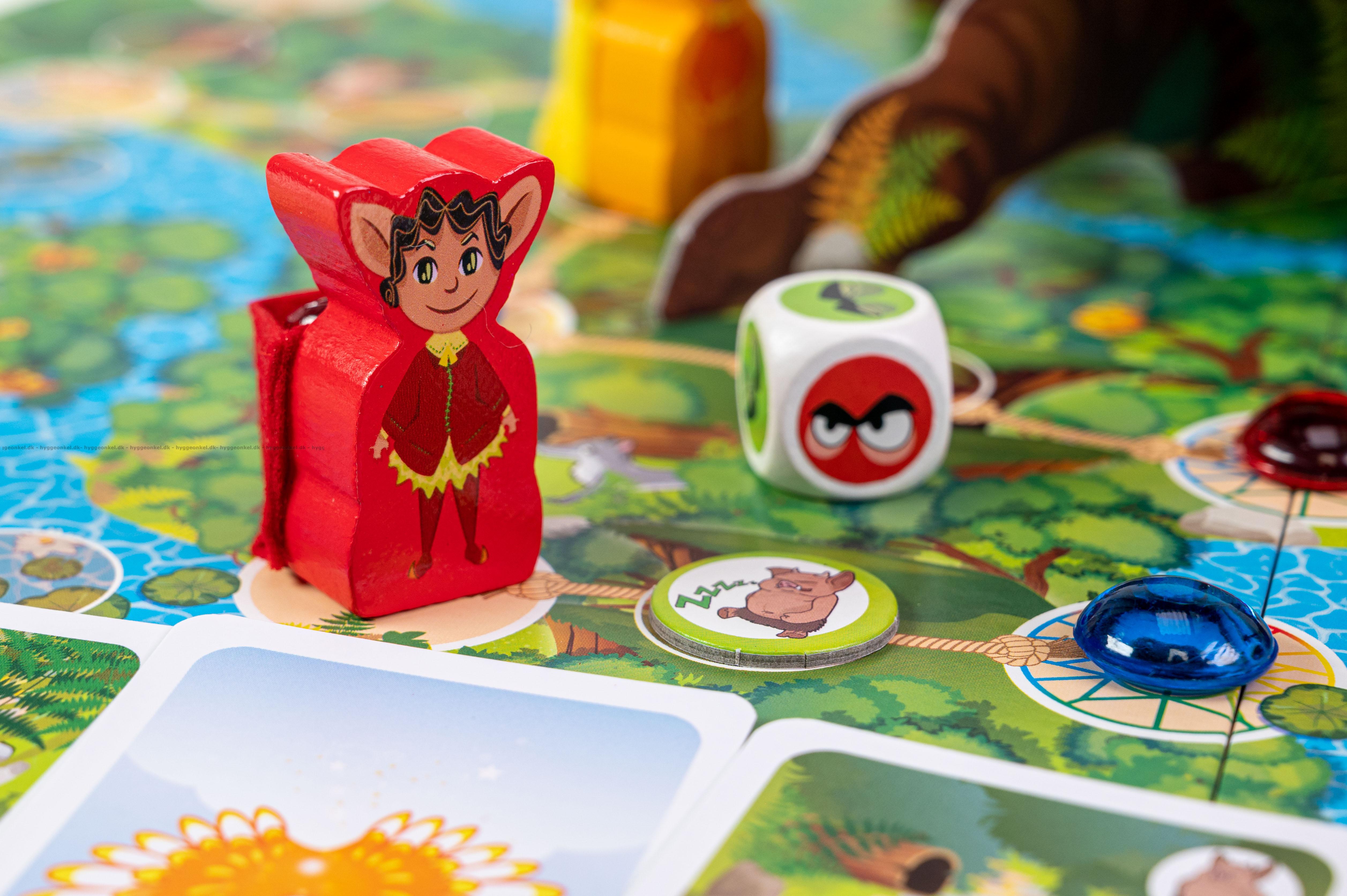 I skoven er der forskellige stier at bevæge sig rundt på fx stier med åkander eller reb. For at rykke frem, skal man have de kort, som passer til stien.