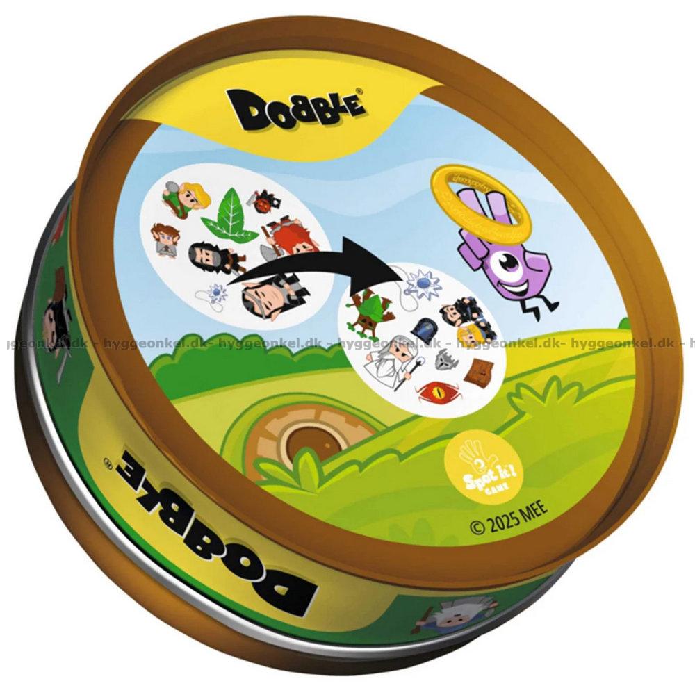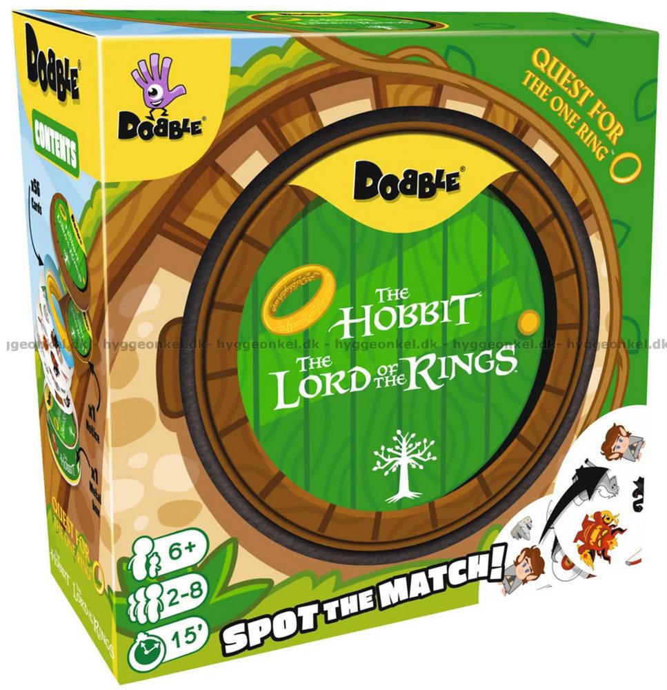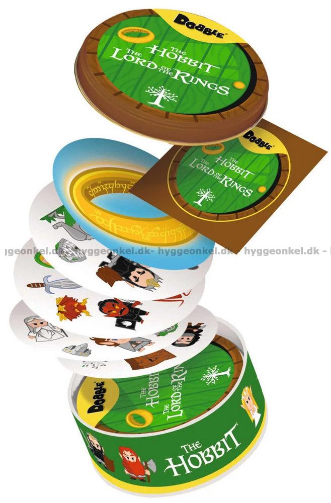 Dobble: The Lord of the Rings – Quest for the One Ring forener det populære familiespil med den legendariske verden fra Ringenes Herre og Hobbitten. I denne udgave kan du opdage ikoniske figurer og genstande som Frodo, Sam, Gandalf og Smaug. Den magiske atmosfære fra Midgård forstærker oplevelsen og gør spillet perfekt til både fans af universet og alle, der elsker hurtige og sjove udfordringer. Spørgsmålet er blot, om du kan være den første til at finde Ringen over alle ringe.