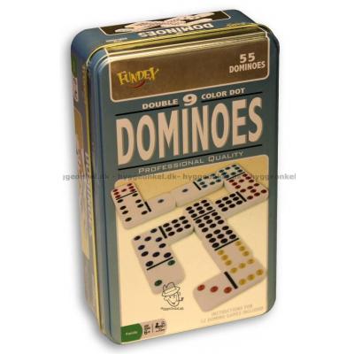 Det er en double 9-udgave, hvilket betyder at brikkerne har en værdi på op til 9. Der er i alt 55 brikker med i spillet.