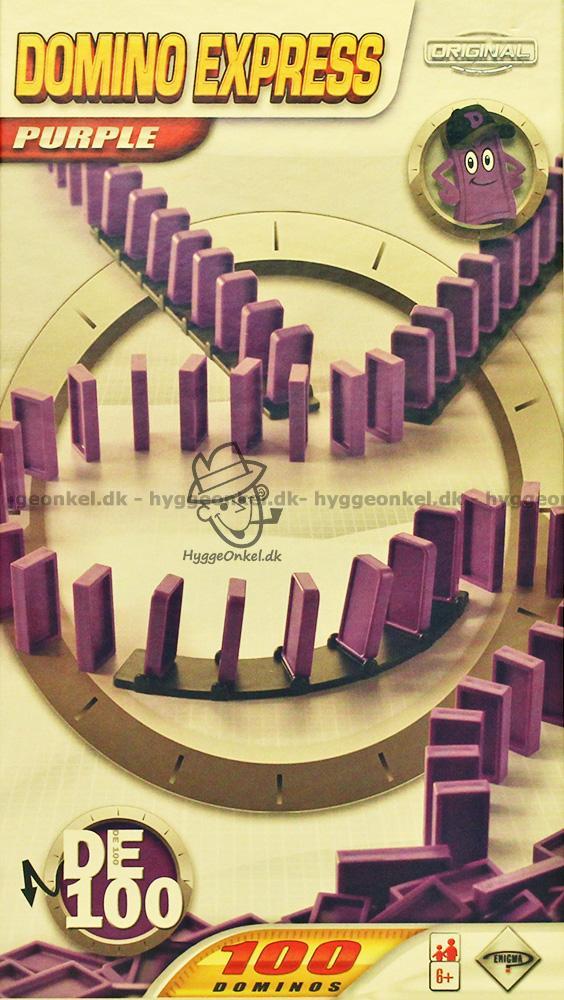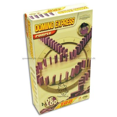 Æsken indeholder 100 domino-brikker samt forhindring. I videoen jeg har lavet, kan du se princippet i Domino Express. Vær opmærksom på, at denne udgave IKKE er den, der vises i filmen.