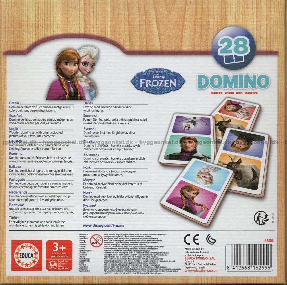 - Spil domino sammen med figurerne fra Frost. Med træbrikker