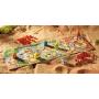 Spilleplade, træbrikker, pap brikker, terning og krystaller.