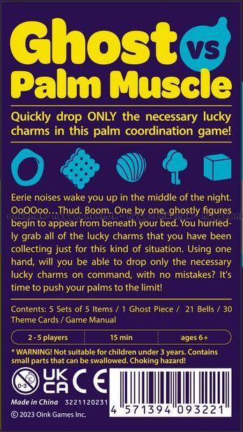 Men pas på – slipper du den forkerte genstand, må du starte forfra! Kun den, der reagerer hurtigt og præcist, kan gribe spøgelset først og vinde en klokke som bevis på sin sejr. Saml fem klokker, og du har besejret ånderne – men vejen dertil er alt andet end fredelig. Spillet er en vild blanding af hurtighed, fingersnilde og grin, hvor forvirringen breder sig, og reflekserne virkelig bliver sat på prøve.