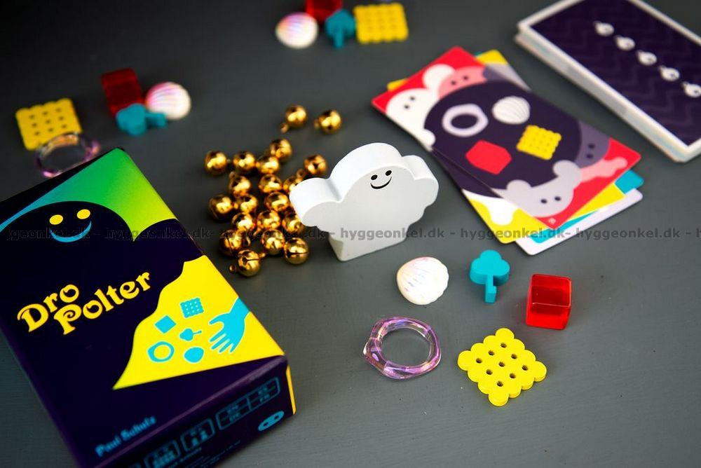 I DroPolter gælder det om at holde hovedet koldt og hænderne rolige, for her skal du – med lukkede hænder – finde og slippe præcis de rigtige genstande, før dine modspillere gør det. Når et tema-kort vendes, viser det hvilke genstande spøgelset kræver, og alle spillere skal samtidig forsøge at lade netop disse ting falde ud af hånden.