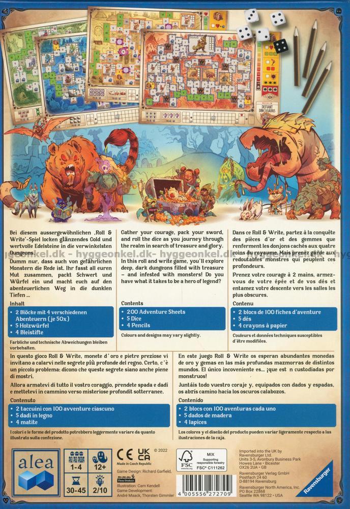 I dette spil finder man fire fint illustrerede riger, som man kan rejse igennem ved hjælp af spillets terninger. Det kræver mod at drage af sted - for godt nok går der rygter om gemte skatte og andet herligt, men også Mens man leder efter skattene i farlige fangehuller, kommer man til at kæmpe mod stærkere og stærkere monstre.Nede i æsken finder du: