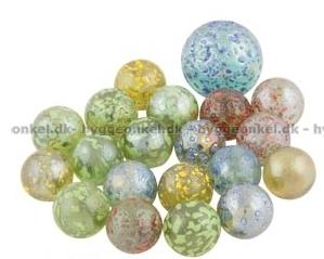 - Her får du ca 21 glaskugler i flere størrelser