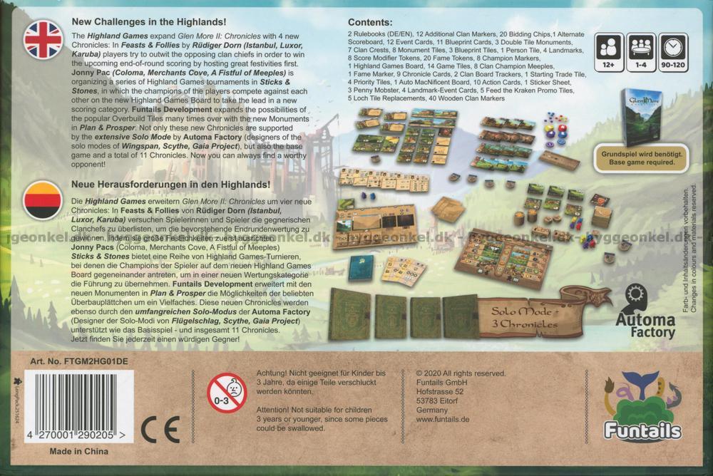 Glen More II: Highland Games indeholder tre nye Chronicles og en fuld solo-mode version.