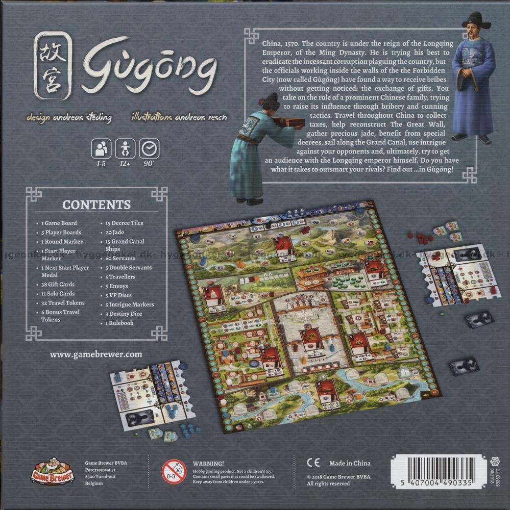Gùgōng bruger denne særlige skik med gaveudveksling som basis for spillet. Spillerne påtager sig rollerne som magtfulde kinesiske familier, der forsøger at få indflydelse og magt ved at give gaver til embedsmændene. Gaverne (i form af kort), du giver som spiller, skal have højere værdi end dem, du får tilbage, så du er tvunget til at tænke strategisk og træffe svære valg angående, hvilke handlinger du vil tage hver runde. Du rejser rundt i Kina, sejler ned ad den store kanal, køber værdifuld jade, hjælper med at genopbygge og udvide den Kinesiske Mur, sikre fordele gennem kejserlige dekreter, påvirke spillet gennem intriger og i sidste ende få en audiens med Kejseren. Hvis kun én spiller får en audiens, vinder denne spiller. Hvis flere får en audiens, vinder spilleren med flest point.