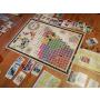 1 spilleplade (A2 størrelse), kort, træ brikker og fliser.