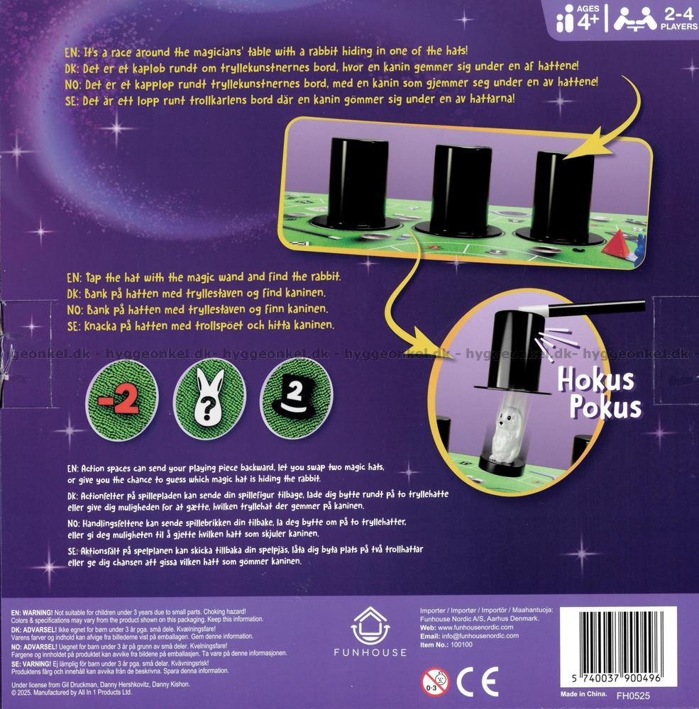 Hokus Pokus: Kanin i hatten er et sjovt og charmerende familiespil, hvor magien for alvor opstår omkring bordet. Hvem tryller kaninen frem først og når hele vejen til målstregen?