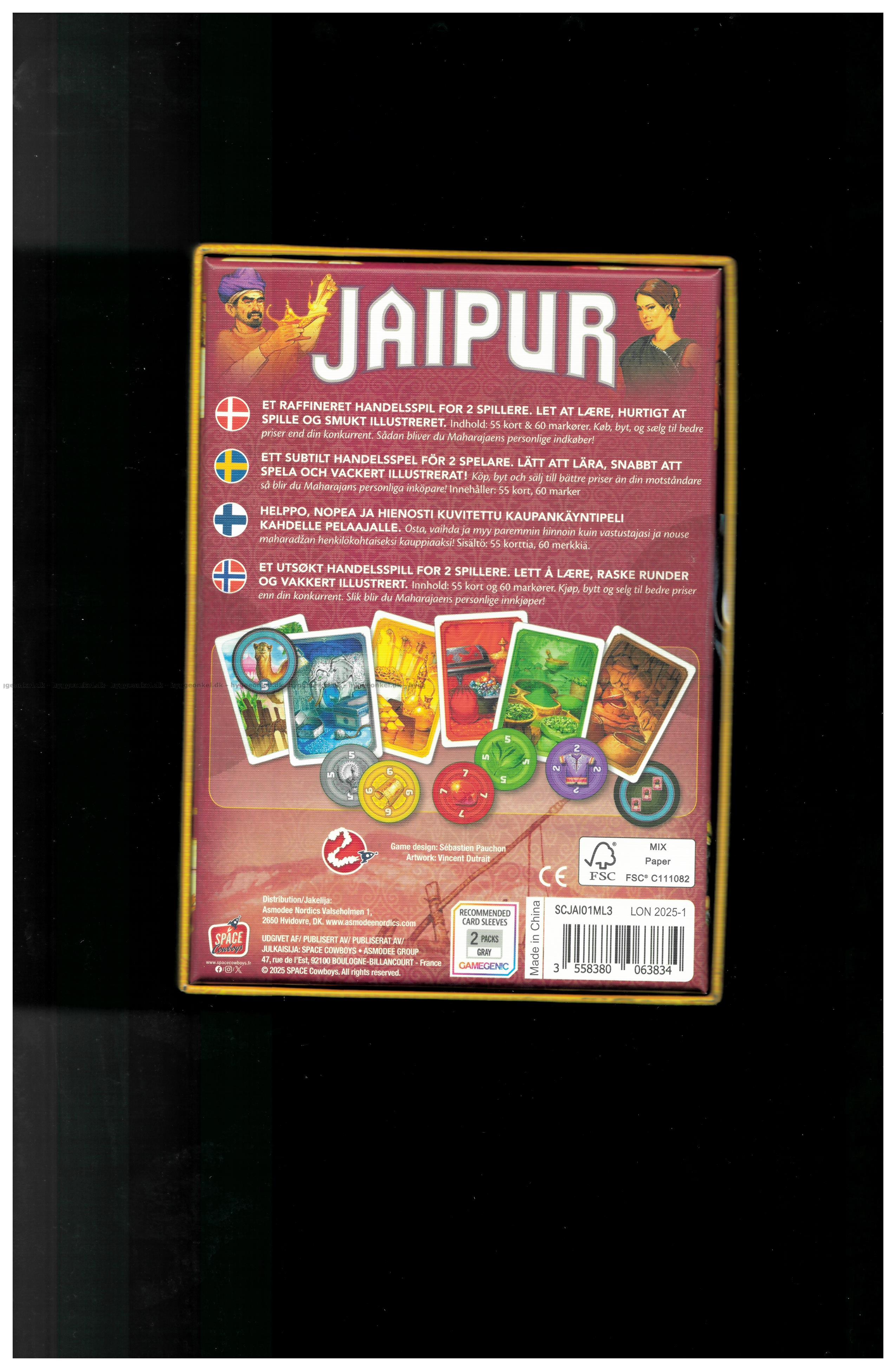 Jaipur er hovedstaden i Rajasthan. Du og din modspiller er de to mest drevne handlende i byen. I kan sælge sand til de lokale og drikkevarer til sten. Men det er ikke nok. DU vil være den eneste handlende i byen som har to af Maharajaens segl, som giver dig adgang til hoffet.