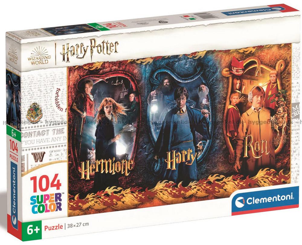 - Harry Potter, Hermione og Ron omgivet af nogle af deres trofaste støtter