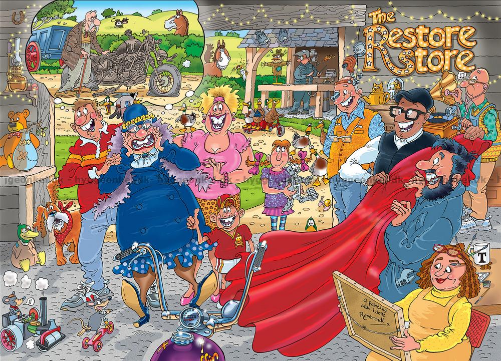 - Dette er et Wasgij puslespil. Du skal ikke lægge forsiden af æsken som i traditionelle puslespil, men forestille dig, hvad damen har fået øje på og lægge det motiv
