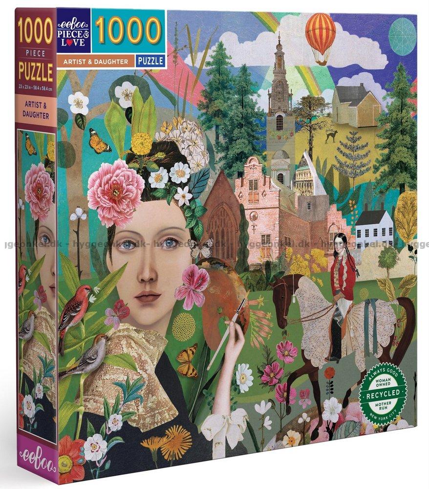 - Den kunstneriske mor står klar med pensel og palette i mens datteren sidder til hest i baggrunden