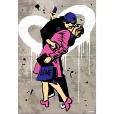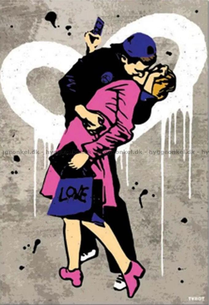 - Det unge par kysser lidenskabeligt foran væggen med et stort hvidt hjerte