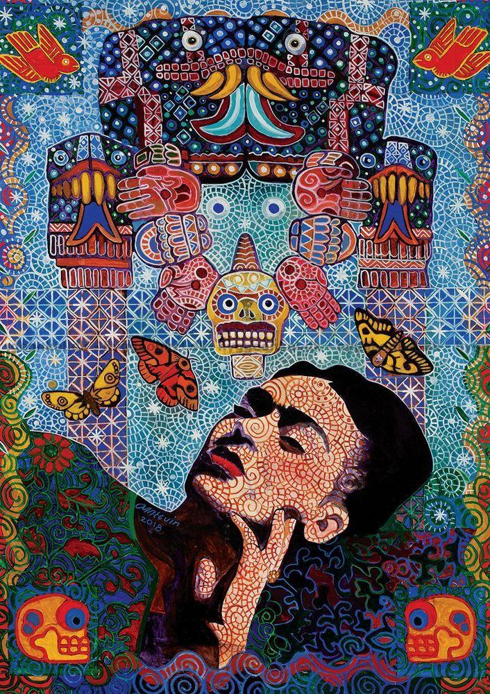 - Farverigt portræt af den mexikanske maler Frida Kahlo