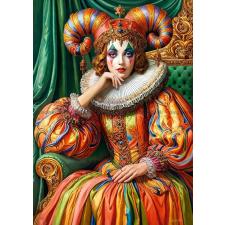 - Hendes tøj er en eksplosion af farver, mens ansigtet er malet med dramatiske, farverige mønstre