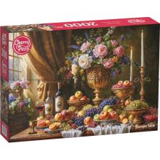 - Et overdådigt bord fyldt med frugt og blomster i barok stil