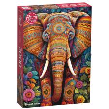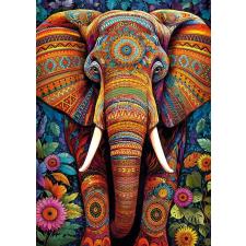- Elefanten er dækket af et væld af farverige mønstre og detaljer