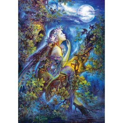 - Kvinden sidder drømmende blandt træernes grene. Månen lyser klart på himlen