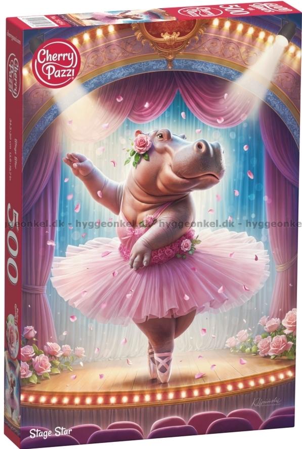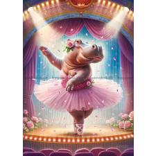 - Den charmerende flodhest iført en lyserød tutu står på en scene