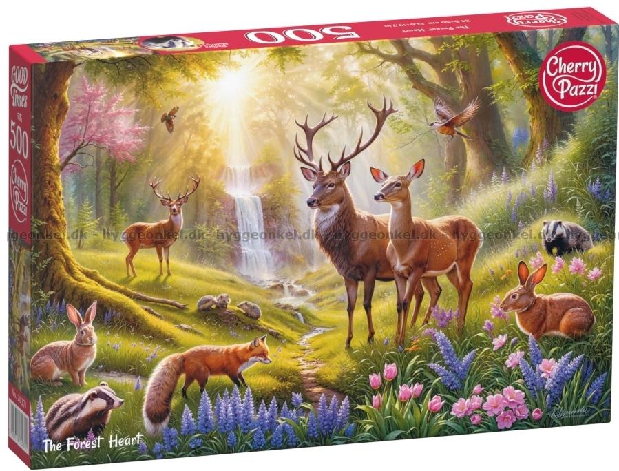 - Midt i den frodig skove står et majestætisk hjortepar omgivet af dyr og farverige blomster. Solens stråler bryder gennem trækronerne