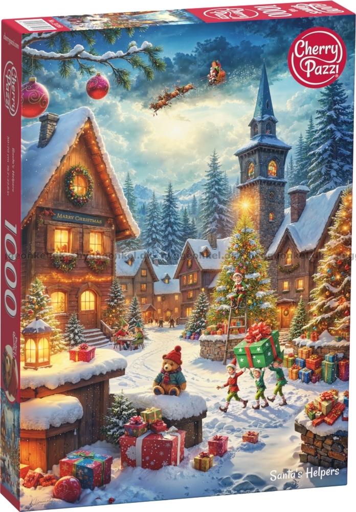- En idyllisk juleby er dækket af sne, hvor nisserne er travlt optaget af at forberede gaver