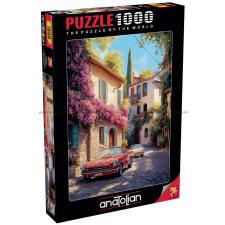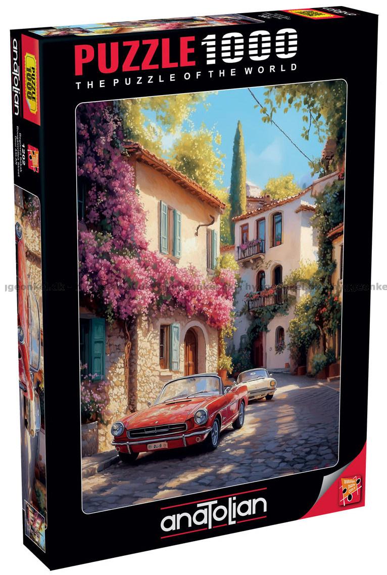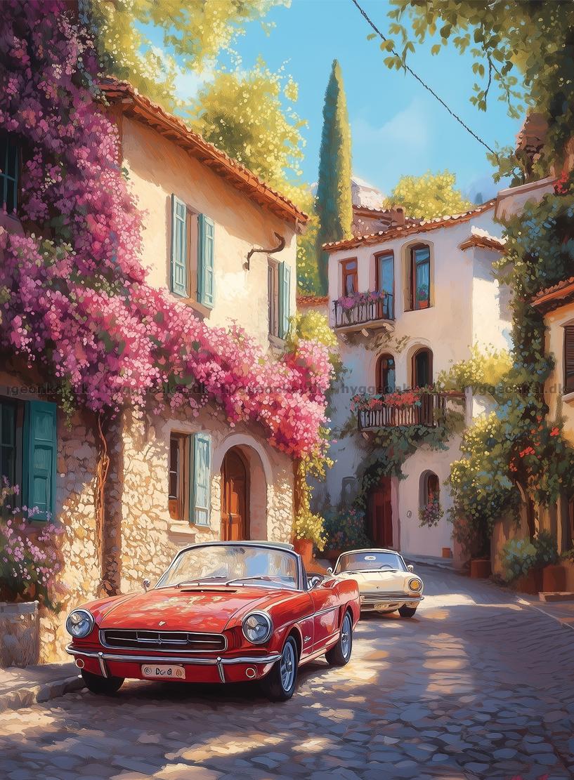 - Den charmerende gade i en solrig by, hvor de smukke blomster blomstrer frodigt langs husmurene