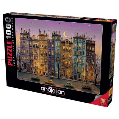 - Himlen er malet i en smuk lilla nuance med en halvmåne og stjerner