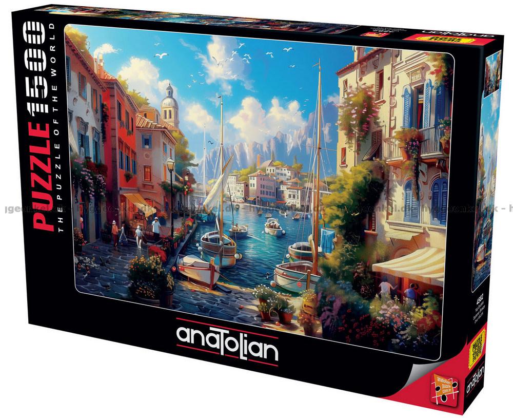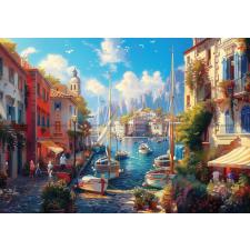 - Den charmerende haveby ligger badet i solskin, hvor farverige bygninger omkranser en rolig havn fyldt med både