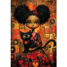 - Den unge pige holder en sort kat i sine arme