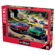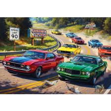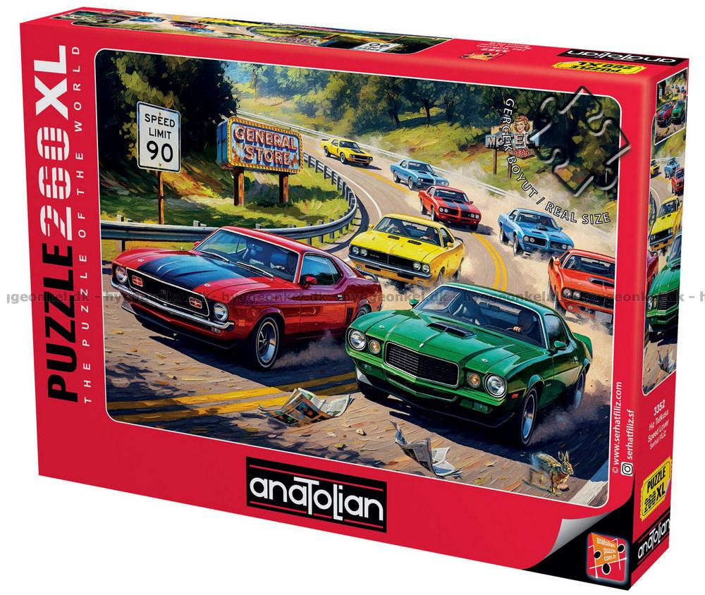 - De klassiske biler suser ned ad den snoede vej. De er omgivet af flyvende blade og støv, der understreger hastigheden