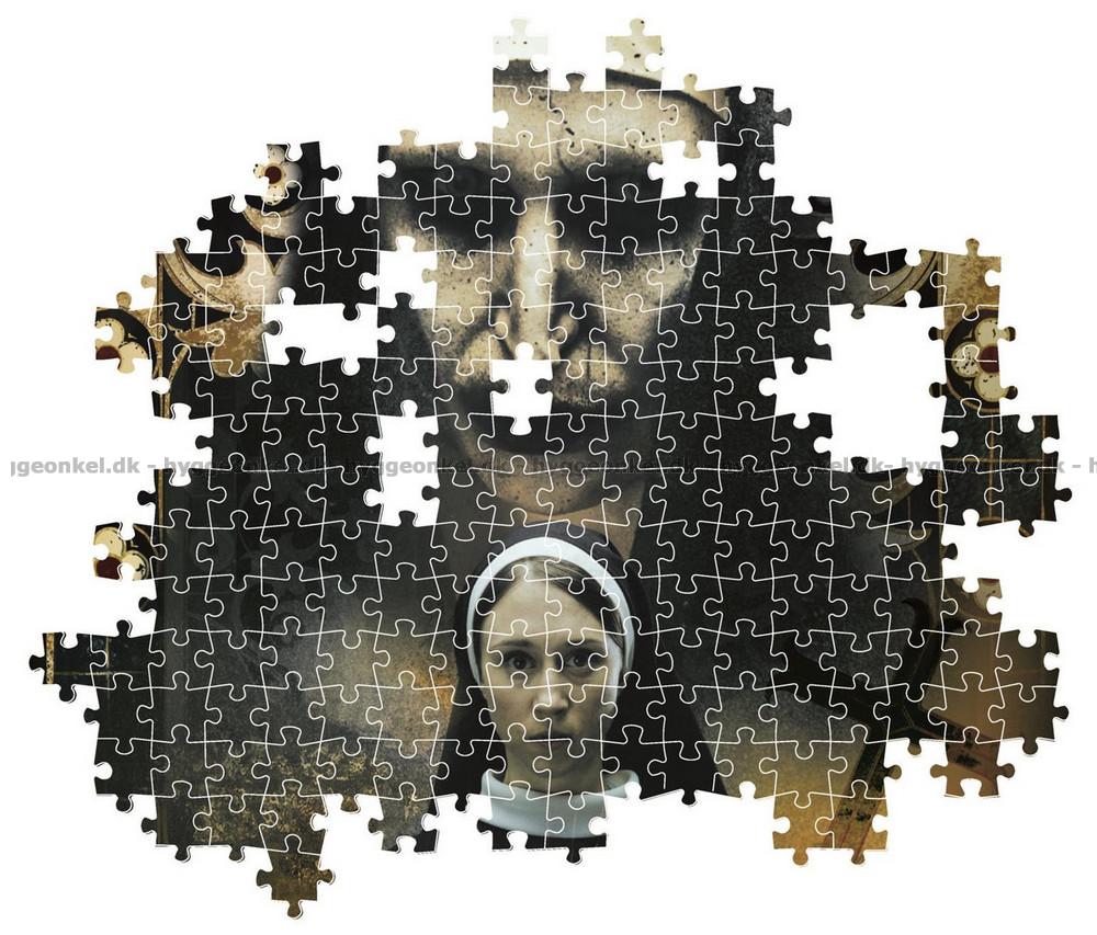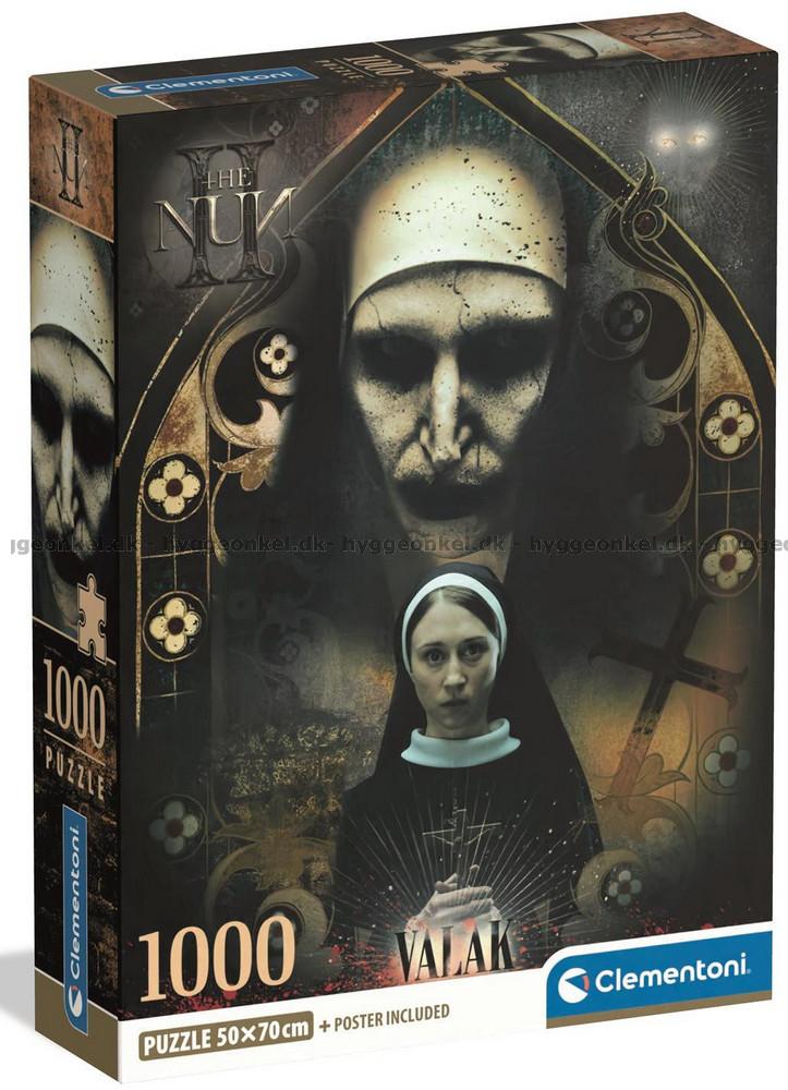 - Dæmonnonnen Valak står med det skræmmende, mørke udtryk omgivet af religiøse symboler