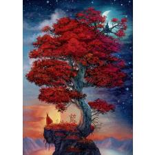- Det majestætiske træ med dybrøde blade strækker sig med den stjerneklare nattehimmel