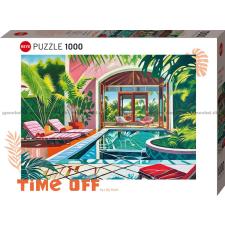 - Den indbydende swimmingpool er omgivet af store grønne planter og solsenge