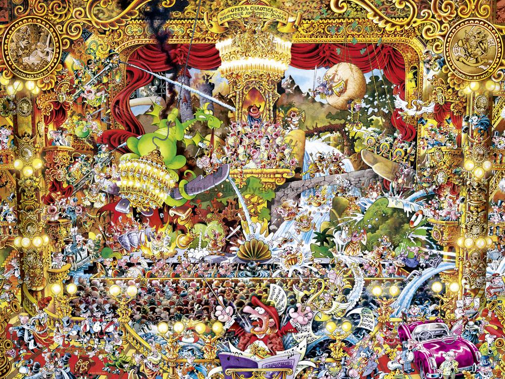 - Der hersker lettere kaos i operaen, hvor den store lysekrone hænger dramatisk ned fra loftet